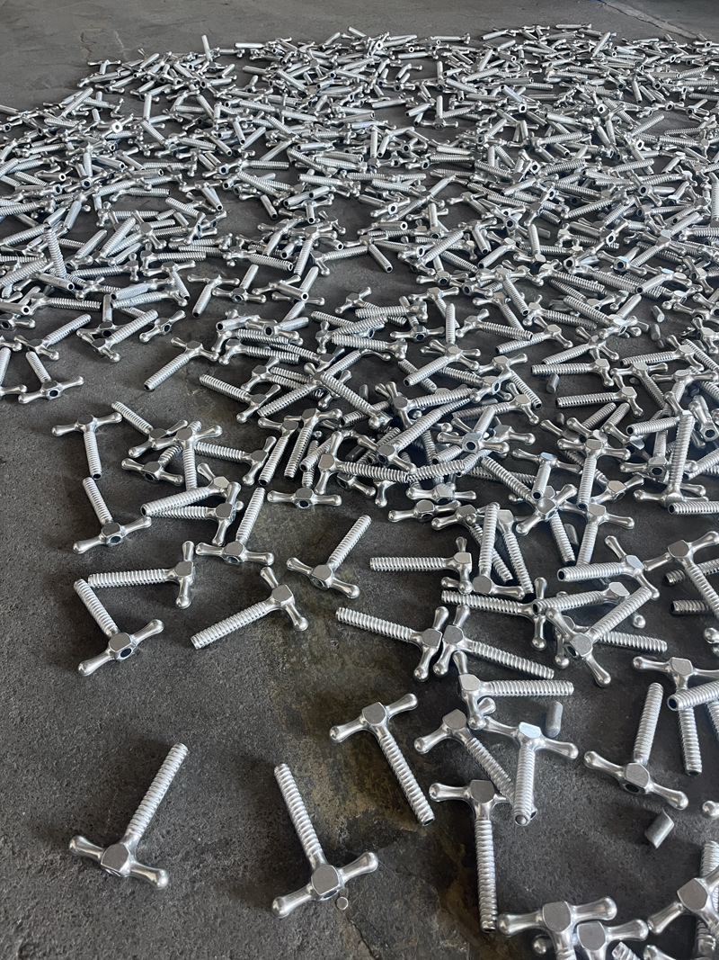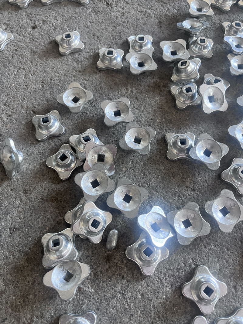 Sau khi cắt tỉa cạnh ban đầu, một kỹ thuật xử lý bề mặt độc đáo được sử dụng để tạo ra lớp hoàn thiện xúc giác, không bị mài mòn. Quá trình này đảm bảo cả sự an toàn và tính sẵn sàng về mặt chức năng cho các bước tiếp theo, đồng thời tăng cường một cách tinh tế các họa tiết khắc với thời tiết ở giai đoạn đầu, gợi lên lớp gỉ của nghề thủ công lâu đời