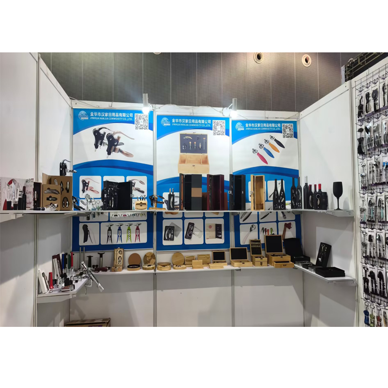 Jinhua Hanjia Commodity Co., Ltd., nằm trong cùng khu vực hành chính với địa điểm triển lãm và cách Thành phố Hàng hóa Nhỏ Nghĩa Ô một giờ lái xe, tận hưởng những lợi thế về chuỗi sản xuất kinh tế khu vực vốn có. Tận dụng môi trường kinh doanh thương mại điện tử quốc tế đang phát triển mạnh của Nghĩa Ô, công ty chúng tôi đã chọn bảy dòng sản phẩm và hàng trăm mặt hàng phù hợp cho các nền tảng, nhà điều hành và doanh nhân thương mại điện tử trong nước và quốc tế. nút chai, dụng cụ làm rượu sâm panh, máy ép tỏi, máy bẻ hạt, dụng cụ mở hộp, dụng cụ gọt vỏ, làm mềm thịt, máy lắc cocktail, bình đeo hông bằng thép không gỉ, bình đựng rượu, bộ rượu vang bằng gỗ và PU, hộp rượu, v.v.