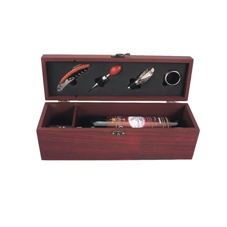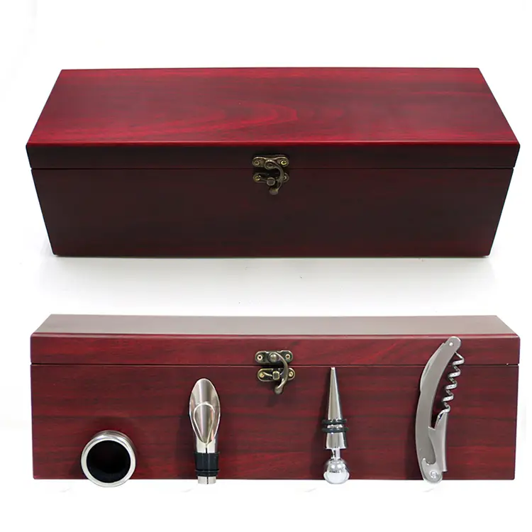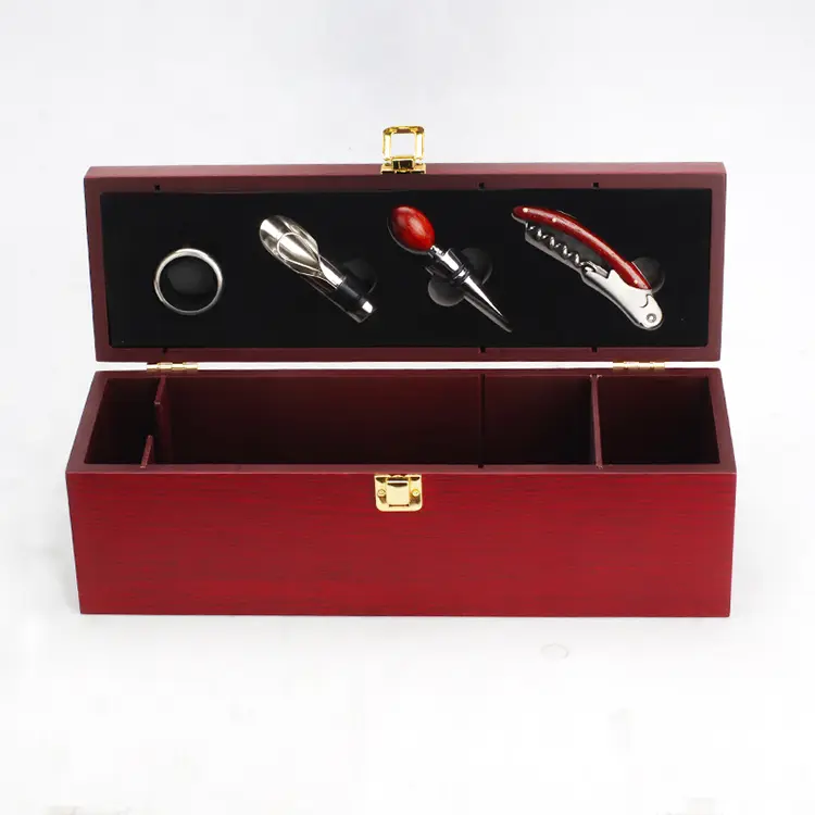 Đây là một bộ rượu bằng gỗ màu đỏ với các phụ kiện rượu vang 4PCS. Nó đã được thiết kế cho các đại lý rượu vang o sử dụng làm bao bì cho doanh số bán rượu của họ, và nó cũng có sẵn cho các nhà sản xuất quà tặng tùy chỉnh để kết hợp vào những món quà được cá nhân hóa cao cấp của họ cho khách hàng của công ty. Hộp gỗ được sản xuất bởi chính chúng ta, khác với các nhà máy khác được mua bên ngoài, chúng ta có một bộ đầy đủ các dây chuyền sản xuất cho hộp gỗ, tất cả các hộp gỗ được sản xuất trong xưởng của chúng ta, kiểm soát chất lượng vượt trội và các mốc thời gian sản xuất chính xác so với các ngành khác. Với hơn 10 năm kinh nghiệm sản xuất chuyên dụng, nhóm của chúng tôi đã phát triển một nghề thủ công tinh tế cao và nhiều kinh nghiệm, đảm bảo các tiêu chuẩn đặc biệt trong mọi sản phẩm chúng tôi tạo ra.