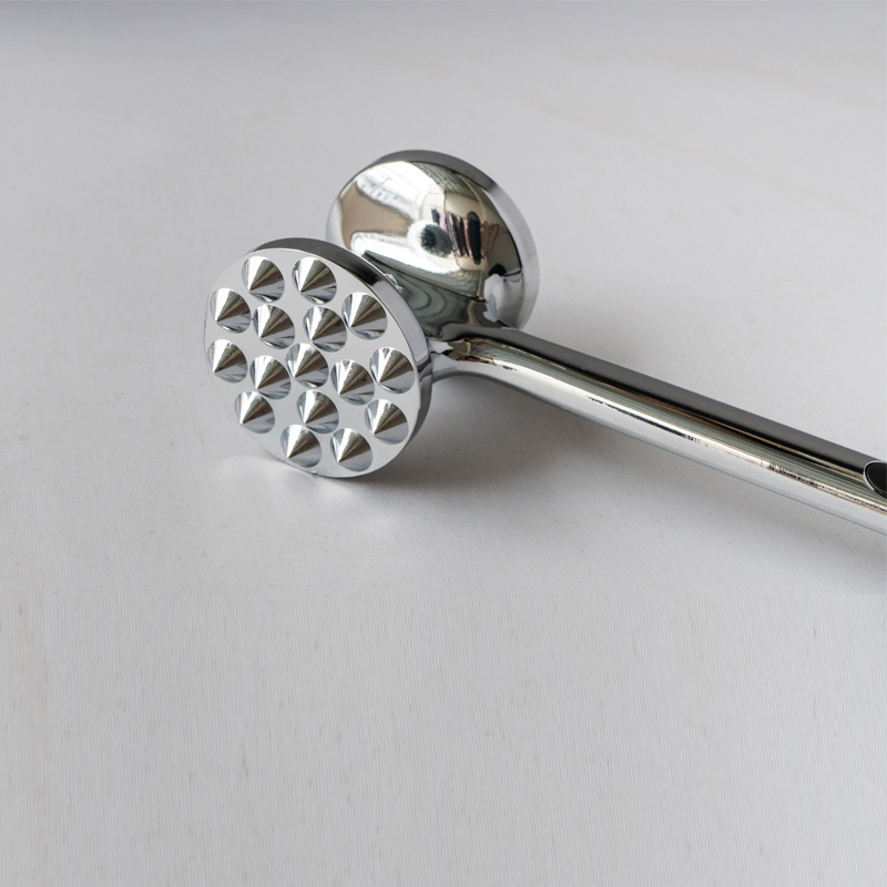 Đây là chất làm mềm thịt bằng hợp kim kẽm do Jinhua Hanjia Commodity Co.,Ltd sản xuất, sử dụng quy trình đúc tích hợp. Bề mặt kim loại được đánh bóng cẩn thận bằng tay và toàn bộ sản phẩm trải qua quy trình mạ điện an toàn thân thiện với môi trường. Lớp phủ sau đó được thụ động hóa để làm cho nó cứng như thép. Với chiều dài 22 cm, nó có kích thước hoàn hảo để người lớn cầm thoải mái. Sự phân bổ trọng lượng giữa mặt trước và mặt sau của máy làm mềm thịt được thiết kế theo vàng tỷ lệ, cho phép người dùng đập thịt với nỗ lực tối thiểu, chỉ dựa vào trọng lực của đầu búa. Đầu làm mềm thịt có hai bề mặt khác nhau dành cho nhiều loại thịt khác nhau. Đệm nhựa ở cả hai bên của tay cầm mang lại sự thoải mái khi sử dụng trong thời gian dài. Trọng lượng tổng thể của máy làm mềm là 275 gram và thiết kế của nó đảm bảo chức năng tuyệt vời đồng thời giảm chi phí hơn 13% so với các mẫu truyền thống. Nó cũng rất dễ làm sạch, bạn chỉ cần rửa sạch bằng nước hoặc sử dụng máy rửa chén.